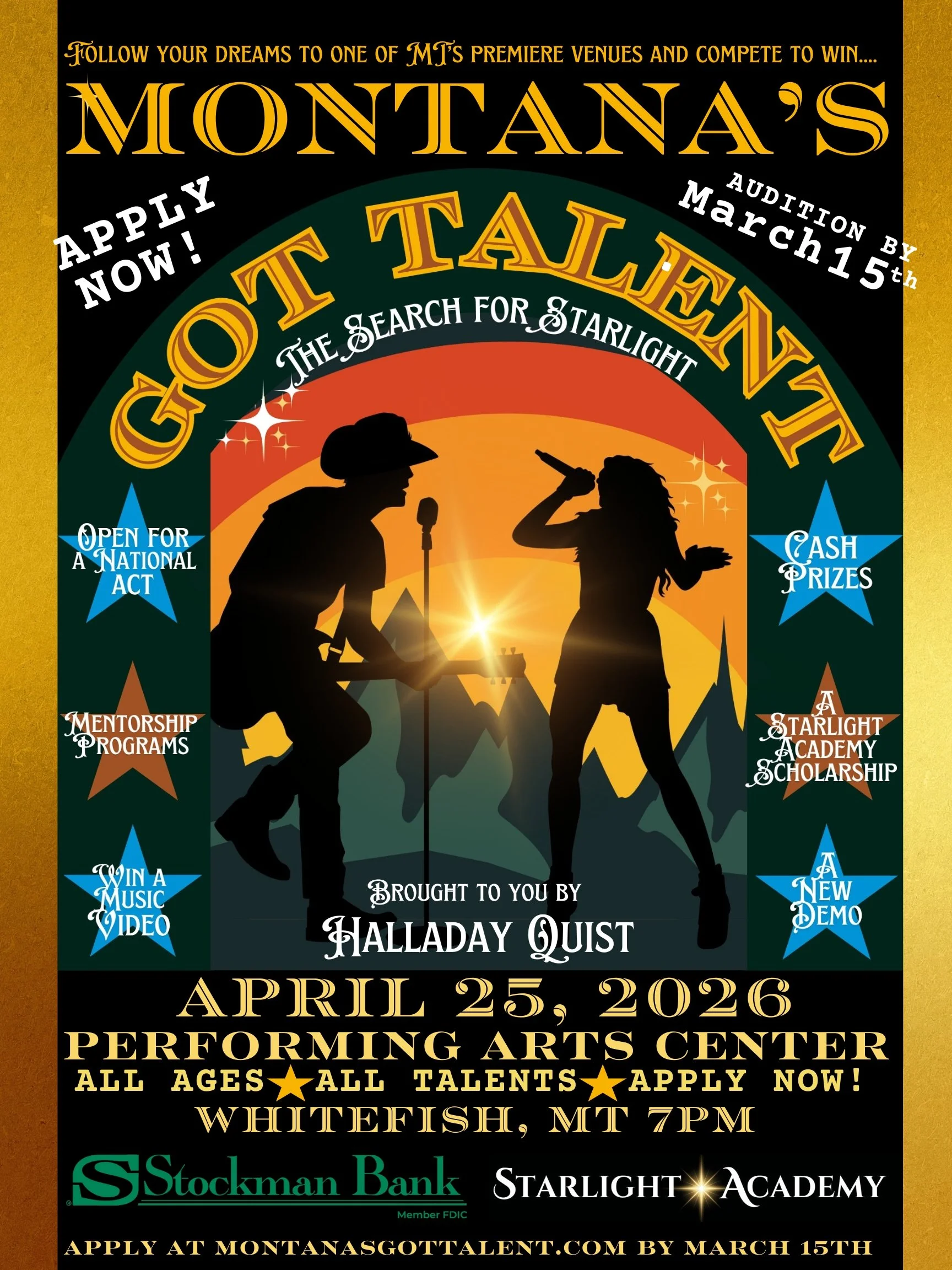 Halladay is producing another year of Montana’s Got Talent to raise money for music education in the state. Happening April 25, 2026 at the Performing Arts Center in Whitefish, MT. Click the link below to find out more!